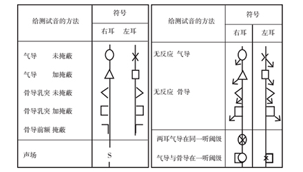 <span style="font-size:16px;"> 橫坐標(biāo)代表頻率,以倍頻程為單位分隔——請(qǐng)記住倍頻程的概念,它指兩個(gè)頻率間的間隔,高頻是相鄰低頻的兩倍;縱坐標(biāo)代表強(qiáng)度。右耳氣導(dǎo)用紅色“O”標(biāo)記,左耳用藍(lán)色“X”標(biāo)記,閾值就是頻率與強(qiáng)度的交叉點(diǎn)位置。比如某人左耳在250Hz處的聽閾是30dBHL,則在250Hz這一軸線上30dBHL中點(diǎn)劃一藍(lán)叉。30dBHL是聽閾,正常人的聽閾是-10dBHL~25dBHL,也就是說(shuō),這個(gè)人的聽力損失(也可稱做聽敏度下降)只有5dBHL。</span></p><center><img src="/upfiles/20181015013344992.png" alt="" /><br /></center><p></p><p style="text-align: center;"><span style="font-size:14px;">國(guó)家統(tǒng)一聽力標(biāo)記符號(hào)</span></p><p><span style="font-size:16px;"> 用聽力圖表示聽閾級(jí)時(shí),應(yīng)采用上表所給符號(hào),對(duì)氣導(dǎo)相鄰點(diǎn)用直線連接,骨導(dǎo)用虛線連接。如在聽力計(jì)最大輸出級(jí)仍無(wú)反應(yīng),可在相應(yīng)符號(hào)處垂直向下畫一箭頭,或在符號(hào)的下外角與垂直方約成45°角向下畫圖一箭頭(即左耳符號(hào)箭頭向右,右耳符號(hào)箭頭向左)。無(wú)反應(yīng)的符號(hào)記在聽力圖上代表聽力計(jì)最大輸出的聽力級(jí)處。如用彩色筆記錄,右耳符號(hào)和連線為紅色,左耳符號(hào)與連線為藍(lán)色。從篩選測(cè)聽法得出的結(jié)果應(yīng)清楚地照此表示出來(lái)。</span></p><p><span style="font-size:16px;"> 更多詳情請(qǐng)登錄m.guisn.com</span></p>" />