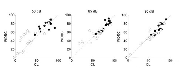 <span style="font-size:16px;"> 重度聽力損失是500Hz、1000Hz、2000Hz和4000Hz平均聽閾在61dB HL和80dB HL之間的聽力損失。重度聽損患者更趨向于:</span></p><p><span style="font-size:16px;"> (1)聽力損失時間較久;</span></p><p><span style="font-size:16px;"> (2)有助聽器佩戴史;</span></p><p><span style="font-size:16px;"> (3)言語分辨率較低;</span></p><p><span style="font-size:16px;"> (4)噪音環(huán)境中交流困難。</span></p><p><span style="font-size:16px;"> 1、重度聽力損失的特點</span></p><p><span style="font-size:16px;"> 60dB HL是單純外毛細胞損傷和內(nèi)外毛細胞共同損傷的分界點,內(nèi)毛細胞受損預示著重度聽力損失,這類患者的頻率選擇能力降低,在相關(guān)頻率范圍內(nèi)難以分辨兩種聲音。這是噪聲環(huán)境下交流困難的主要原因。</span></p><p><span style="font-size:16px;"> 簡單來說,頻率選擇能力越低,自身降噪能力越差,噪聲下識別信號的能力也就越差。</span></p><center><span style="font-size:16px;"><img alt="" src="/upfiles/20181016012659501.png" width="440" height="250" /></span></center><p></p><p><span style="font-size:16px;"> 2、選擇合適的放大策略</span></p><p><span style="font-size:16px;"> 反饋抑制:這項技術(shù)在傳統(tǒng)方法的基礎(chǔ)上有更好的減少嘯叫的效果。</span></p><p><span style="font-size:16px;"> 指向性麥克風:有指向性功能的助聽器可以明顯提高信噪比(SNR)。現(xiàn)在自適應(yīng)指向性麥克風廣泛地應(yīng)用于大功率耳背機中。</span></p><p><span style="font-size:16px;"> 對于噪聲下言語交流困難的重度聽力損失患者,選配帶有指向性麥克風的助聽器效果顯著。</span></p><p><span style="font-size:16px;"> 聽力學家對重度聽損人士的指向性麥克風做過獲益度測試,發(fā)現(xiàn)平均言語識別能力提升了14%。</span></p><p><span style="font-size:16px;"> 重度聽損患者使用指向性功能時必須保證一定低頻增益,否則他們會感覺聲音不夠洪亮。</span></p><center><span style="font-size:16px;"><img alt="" src="/upfiles/201810160127134771.png" width="440" height="250" /></span></center><p></p><p><span style="font-size:16px;"> 寬動態(tài)范圍壓縮線路(WDRC):</span></p><p><span style="font-size:16px;"> 如下圖,白點是重度聽力損失患者的輔音識別得分,黑點是輕度至中度聽損患者的輔音識別得分;每位受試者佩戴四通道的耳背機,驗配采用NAL公式;測試言語聲強度分別為50dB SPL、65dB SPL和80dB SPL;比較WDRC和線性輸出壓縮限制(CL)兩種線路的得分。</span></p><center><span style="font-size:16px;"><img alt="" src="/upfiles/201810160127198326.png" width="600" height="240" /></span></center><p></p><p><span style="font-size:16px;"> 等分位于對角線附近代表兩種處理方式效果相似,得分位于對角線上方表示W(wǎng)DRC線路效果更好,而下方則表示CL線路效果更好。</span></p><p><span style="font-size:16px;"> 對重度聽損患者來說,輸入輕聲和中等聲時WDRC線路比CL線路效果更好;輸入響聲時兩種線路的區(qū)別并不大。所以使用WDRC線路可以獲得比CL線路更高的言語識別率。</span></p><p><span style="font-size:16px;"> 壓縮速度:壓縮越深可聽度越高,因為患者可以聽到更寬的聲音響度范圍。</span></p><p><span style="font-size:16px;"> 快反應(yīng)壓縮(起效和釋放時間很短)可以降低元音(響度較大)增益并提高輔音(響度較小)增益,從而提高可聽度。</span></p><p><span style="font-size:16px;"> 所以理論上來講,對于重度聽損人士,使用多通道助聽器、低壓縮拐點、高壓縮比、音節(jié)壓縮,可以最大程度提高驗配效果。</span></p><center><span style="font-size:16px;"><img alt="" src="/upfiles/201810160127304305.png" width="600" height="500" /></span></center><p></p><p><span style="font-size:16px;"> 但壓縮越深就意味著有聲音失真越大,音節(jié)壓縮丟失了重要言語信息,導致輔音分辨不清。若要保留這些信息,則需要慢反應(yīng)壓縮(起效和釋放時間較長)。</span></p><p><span style="font-size:16px;"> 最好的情況是在提高可聽度的同時還保證信號不失真,但目前很難實現(xiàn),找到二者的平衡點是最佳的選配方案。</span></p><center><span style="font-size:16px;"><img alt="" src="/upfiles/20181016012736476.png" width="440" height="250" /></span></center><p></p><p><span style="font-size:16px;"> 上圖為一組重度聽力損失患者選配快速和慢速WDRC線路的言語識別率對比。</span></p><p><span style="font-size:16px;"> 在輸入聲級為50和65 dB SPL時,快反應(yīng)壓縮線路的受試者得分明顯比慢反應(yīng)壓縮線路的受試者差;在80 dB SPL輸入聲級下則并無明顯差別。</span></p><p><span style="font-size:16px;"> 對輕度和中度聽力損失患者來說,無論何種輸入聲級,兩種壓縮方式的得分都沒有明顯差別(并未在圖中顯示)。</span></p><p><span style="font-size:16px;"> 對極重度聽力損失患者來說,可聽度比其他任何信息都重要,快反應(yīng)壓縮線路效果比慢反應(yīng)壓縮線路更好。</span></p><p><span style="font-size:16px;"> 綜上所述,在使用多通道WDRC線路助聽器前提下,一定程度的可聽度是必須的,在這個基礎(chǔ)上要追求最低的失真(最低的壓縮比以及最慢的壓縮),才能達到最好的驗配效果。</span></p><p><span style="font-size:16px;"> 我們經(jīng)常會遇到重度聽力損失患者,應(yīng)該找到適合他們的驗配策略并提供心理和生理咨詢。</span></p><p><span style="font-size:16px;"> 助聽器選配的效果受到外周及中樞聽覺系統(tǒng)的能力限制,重度感音神經(jīng)性聽力損失患者很少能在噪音環(huán)境中
