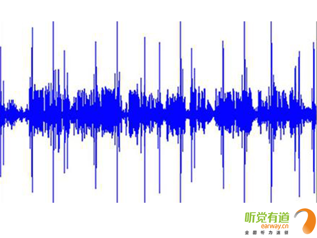 在圖中可以看到很多持續時間非常短但強度很大的短促聲音,這就是瞬間噪音。瞬間噪音往往具有很強的刺激性,容易驚嚇助聽器佩戴者,使其無法集中注意力,并且感覺很難受。