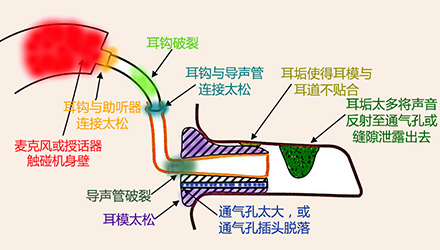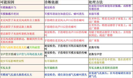 <span style="font-size:16px;"> 嘯叫,一直是引起助聽器使用者不滿的一大原因,也是驗配師在助聽器調試時最為棘手的難題之一。</span></p><p><span style="font-size:16px;"> 通常,嘯叫分內部嘯叫和外部嘯叫。內部嘯叫常由內部零件故障引起,而外部嘯叫則是與助聽器外殼或耳模,助聽器調試等有關。</span></p><p style="text-align: center;"><span style="font-size:16px;"><img src="/upfiles/201810100140556872.jpg" alt="" /><br /></span></p><p><span style="font-size:16px;"> 我們常常說的外部嘯叫是在聲音被麥克風拾取、放大器放大、授話器轉換后,又從各種縫隙(如外殼與耳道的縫隙、通氣孔)中“跑”出來,又“跑”進去,如此反復多次,使得聲音越來越大,產生“吱吱吱”的惱人嘯叫。</span></p><p><span style="font-size:16px;"> 以助聽器的角度來看,shou話器把聲音授給耳朵聽,當用“授”,即授話器。</span></p><p><span style="font-size:16px;"> 接下來將分別針對定制式(ITE/ITC/CIC)和耳背式(BTE)助聽器的嘯叫問題,跟著產生嘯叫的路徑,一一“攻破”嘯叫難題。注意,這里不說助聽器調試,只尋嘯叫路徑,并“堵死”嘯叫“通路”,讓進入助聽器的聲音“不走回頭路”。</span></p><p><span style="font-size:16px;"> 1、ITE/ITC/CIC助聽器</span></p><p><span style="font-size:16px;"> 先來看看ITE/ITC/CIC助聽器可能發生嘯叫的路徑。</span></p><p><span style="font-size:16px;"> 圖1里是一個定制式助聽器佩戴于外耳道內的示意圖,各種顏色的字和相應顏色的標記展示了發生嘯叫的各種情況。</span></p><center><span style="font-size:16px;"><img alt="" src="/upfiles/201810100142273990.png" width="440" height="250" /></span></center><p></p><p style="text-align: center;"><span style="font-size:16px;">圖1:ITE/ITC/CIC助聽器發生嘯叫的路徑一覽</span></p><p style="text-align: left;"><span style="font-size:16px;"> 例如,紅色表示“麥克風管子脫落”,這屬于助聽器內部零件脫落、故障,為內部嘯叫。</span></p><p><span style="font-size:16px;"> 橙色表示“外殼佩戴太松”,這屬于外殼不密封的聲音泄露,為外部嘯叫。</span></p><p><span style="font-size:16px;"> 那如何檢查出是這些原因,并對問題進行相應處理呢?請對照表1中的“診斷依據”和“處理方法”查看。</span></p><center><span style="font-size:16px;"><img alt="" src="/upfiles/201810100142337254.png" width="520" height="250" /></span></center><p></p><p style="text-align: center;"><span style="font-size:16px;">表1:ITE/ITC/CIC助聽器產生嘯叫的可能原因及對應的診斷依據、處理方法</span></p><p><span style="font-size:16px;"> 例如,當發現“手指堵住麥克風入聲口后仍有嘯叫”,可推斷原因是“麥克風管子從麥克風或外殼上脫落”或“麥克風或授話器移動,觸碰到外殼或其他傳感器”,這時的處理方法是“送廠維修”。</span></p><p><span style="font-size:16px;"> 2、BTE助聽器</span></p><p><span style="font-size:16px;"> 學會了看ITE/ITC/CIC助聽器的一圖一表,再來看看BTE助聽器的嘯叫路徑圖(圖2),以及表2中羅列的可能原因、診斷依據和處理方法,相信看起來更加輕松、直觀、一目了然。</span></p><center><span style="font-size:16px;"><img alt="" src="/upfiles/201810100142383483.png" width="440" height="250" /></span></center><p></p><p style="text-align: center;"><span style="font-size:16px;">圖2:BTE助聽器發生嘯叫的路徑一覽</span></p><center><span style="font-size:16px;"><img alt="" src="/upfiles/201810100142449945.png" width="462" height="273" /></span></center><p></p><p style="text-align: center;"><span style="font-size:16px;">表2:BTE助聽器產生嘯叫的可能原因及對應的診斷依據、處理方法</span></p><p><span style="font-size:16px;"> 更多詳情請登錄m.guisn.com。</span></p>" />