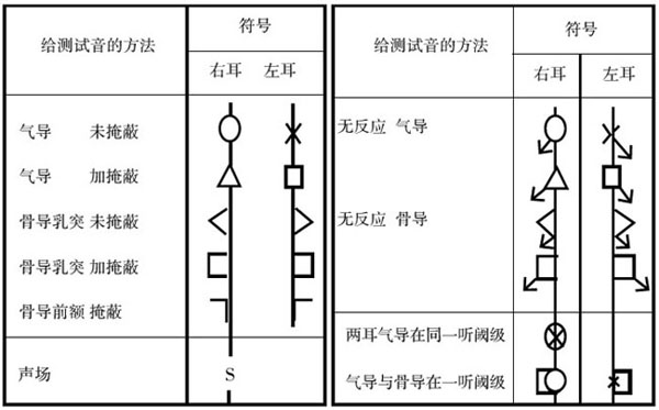 橫坐標(biāo)代表頻率,以倍頻程為單位分隔——請(qǐng)記住倍頻程的概念,它指兩個(gè)頻率間的間隔,高頻是相鄰低頻的兩倍;縱坐標(biāo)代表強(qiáng)度。右耳氣導(dǎo)用紅色“○”標(biāo)記,左耳用藍(lán)色“×” 標(biāo)記,閾值就是頻率與強(qiáng)度的交叉點(diǎn)位置。比如某人左耳在250Hz處的聽(tīng)閾是30dBHL,則在250Hz這一軸線(xiàn)上30dB HL中點(diǎn)劃一藍(lán)叉。30dB HL是聽(tīng)閾,正常人的聽(tīng)閾是-10dB HL~25dB HL,也就是說(shuō),這個(gè)人的聽(tīng)力損失(也可稱(chēng)做聽(tīng)敏度的下降)只有5dB HL。</p><p> </p><center><img alt="" src="/upfiles/201906100159589704.png" width="600" height="373" /></center><p></p><p style="text-align: center;">國(guó)家統(tǒng)一聽(tīng)力標(biāo)記符號(hào)</p><p> 用聽(tīng)力圖表示聽(tīng)閾級(jí)時(shí),應(yīng)采用上表所給符號(hào),對(duì)氣導(dǎo)相鄰點(diǎn)用直線(xiàn)連接,骨導(dǎo)用虛線(xiàn)連接。如在聽(tīng)力計(jì)最大輸出級(jí)仍無(wú)反應(yīng),可在相應(yīng)符號(hào)處垂直向下畫(huà)一箭頭,或在符號(hào)的下外角與垂直方向約成45o角向下畫(huà)一箭頭(即左耳符號(hào)箭頭向右,右耳符號(hào)箭頭向左)。無(wú)反應(yīng)的符號(hào)應(yīng)記在聽(tīng)力圖上代表聽(tīng)力計(jì)最大輸出的聽(tīng)力級(jí)處。如用彩色筆記錄,右耳符號(hào)和連線(xiàn)為紅色,左耳符號(hào)與連線(xiàn)為藍(lán)色。從篩選測(cè)聽(tīng)法得出的結(jié)果應(yīng)清楚地照此表示出來(lái)。</p><p> 更多詳情請(qǐng)登錄聽(tīng)覺(jué)有道助聽(tīng)器m.guisn.com</p>" />