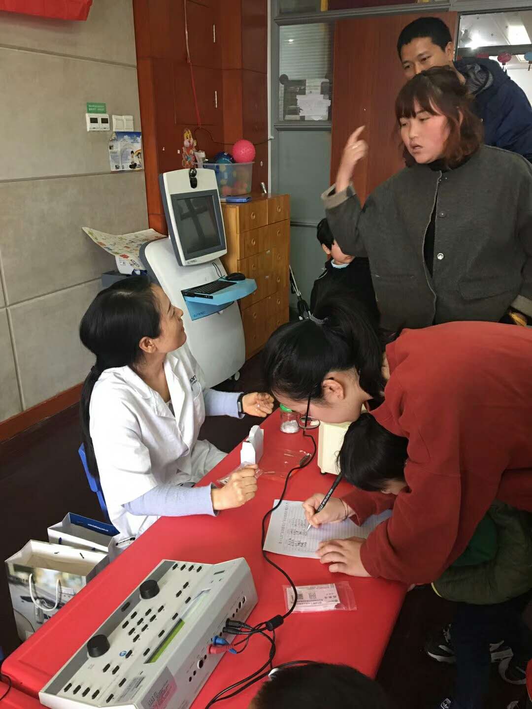 <span style="font-size:16px;"> 為更好提高人民群眾的愛耳與護耳意識,有效減少聽障發(fā)生,促進我國聽障預(yù)防與康復(fù)工作的發(fā)展,由聽覺有道助聽器驗配中心發(fā)起的“愛耳月在行動”——聽障兒童免費聽力檢測活動在江蘇昆山市舉行。</span></p><p><span style="font-size:16px;"><span style="font-size:16px;"> </span>昆山市聽覺有道助聽器驗配師出席活動并與孩子們親切互動,共同呼吁全社會關(guān)注聽障兒童的全面康復(fù)。</span></p><p><span style="font-size:16px;"><br /></span></p><p style="text-align: center;"><span style="font-size:16px;"> <img src="/upfiles/201803220554493300.jpg" width="640" alt="" /> </span></p><p style="text-align: center;"><span style="font-size:16px;"><br /></span></p><p style="text-align: center;"><span style="font-size:16px;"> <img src="/upfiles/201803220554497204.jpg" width="640" alt="" /> </span></p><p style="text-align: center;"><span style="font-size:16px;"><br /></span></p><p style="text-align: center;"><span style="font-size:16px;"> <img src="/upfiles/201803220554496041.jpg" width="640" alt="" /> </span></p><p style="text-align: center;"><span style="font-size:16px;"><br /></span></p><p style="text-align: center;"><span style="font-size:16px;"><img src="/upfiles/201803220554499339.jpg" width="640" alt="" /><br /></span></p><p style="text-align: center;"><span style="font-size:16px;"><br /></span></p><p><span style="font-size:16px;"> 據(jù)統(tǒng)計數(shù)據(jù)顯示,目前我國有聽力語言障礙的人數(shù)為2780萬,其中0至6歲的聽障兒童約有13.7萬,每年由于藥物、遺傳、感染、疾病、環(huán)境噪聲污染、意外事故等原因所造成的新生耳損幼兒約2.3萬余名。聽力語言障礙嚴(yán)重損害人的聽覺言語功能,影響人的身心健康與生活質(zhì)量,并造成一定的社會與經(jīng)濟負擔(dān)。有效預(yù)防聽力殘疾,需要從源頭上避免聽力障礙的發(fā)生。</span></p><p><span style="font-size:16px;"><br /></span></p><p style="text-align: center;"><span style="font-size:16px;"><img src="http://m.guisn.com/upfiles/201803220554493192.jpg" width="640" style="font-size:16px;" alt="" /><br /></span></p><p style="text-align: center;"><span style="font-size:16px;"><br /></span></p><p style="text-align: center;"><span style="font-size:16px;"><img src="http://m.guisn.com/upfiles/201803220554494355.jpg" width="640" style="font-size:16px;" alt="" /><br /></span></p><p style="text-align: center;"><span style="font-size:16px;"><br /></span></p><p style="text-align: center;"><span style="font-size:16px;"><img src="http://m.guisn.com/upfiles/201803220554492694.jpg" width="640" style="font-size:16px;" alt="" /><br /></span></p><p style="text-align: center;"><span style="font-size:16px;"><br /></span></p><p><span style="font-size:16px;"> 活動現(xiàn)場,驗配師為聽障兒童聽力檢查、助聽器調(diào)節(jié)、分享康復(fù)訓(xùn)練知識等。同時,現(xiàn)場介紹我國聽障兒童康復(fù)現(xiàn)況,傳播聽障兒童康復(fù)理念,幫助聽障兒童全面康復(fù),聽見未來。</span></p>" />