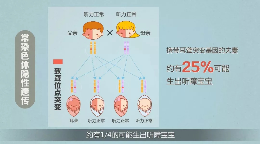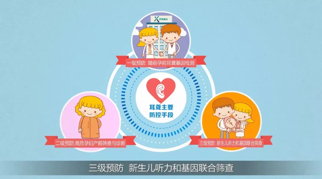 <iframe width="640px" height="380px" frameborder="0" src="https://v.qq.com/txp/iframe/player.html?vid=p084275qasv" allowfullscreen="true"></iframe></p><p> 中國,近14億的人口中就有著2780萬人,倍受聽力障礙的煎熬。</p><p> <strong>每年有6萬余名聽障兒童</strong></p><p> 中國每年有6萬余名新生兒由于遺傳、藥物、感染、疾病、環(huán)境等方面的原因成為聽障兒童,其中有60%的聽力障礙來自遺傳,成為最大的致聾因素,每100個(gè)聽力正常的父母就有6個(gè)攜帶遺傳性耳聾突變基因,攜帶者會傳遞給孩子引發(fā)聾病。</p><p style="text-align: center;"><img src="/upfiles/201903050159331282.jpg" width="640" alt="" /><br /></p><p style="text-align: center;"><img src="/upfiles/20190305020124203.jpg" width="640" alt="" /><br /></p><p> 聽障群體是一個(gè)龐大且每年都在增長的弱勢群體,耳聾一旦形成便不可恢復(fù),一個(gè)聽障寶寶的誕生,將會給家庭和社會帶來嚴(yán)重的經(jīng)濟(jì)負(fù)擔(dān)和不可估量的精神損失。</p><p> <strong>遺傳成為最大的導(dǎo)致耳聾的因素</strong></p><p> 遺傳性耳聾的遺傳方式多數(shù)為:“常染色體隱性遺傳”和“線粒體母系遺傳”常染色體隱性遺傳,雙方聽力正常的攜帶者,約有1/4的可能生出聽障寶寶。線粒體基因突變屬于母系遺傳。</p><p style="text-align: center;"><img src="/upfiles/201903050212503998.jpg" width="640" alt="" /><br /></p><p style="text-align: center;"><img src="/upfiles/201903050213053857.jpg" width="640" alt="" /><br /></p><p> 如果媽媽攜帶藥物耳聾基因突變,她的孩子無論男孩還是女孩,一旦用藥物不當(dāng),便會致聾!</p><p> <strong>讓“靜音鍵”不再被按下</strong></p><p style="text-align: center;"><strong><img src="/upfiles/201903050213245111.jpg" width="640" alt="" /><br /></strong></p><p> 耳聾目前不可根治,但可防可控。</p><p> 主要防控手段有:</p><p> 一級預(yù)防:婚前孕前耳聾基因檢測;</p><p> 二級預(yù)防:高危孕婦產(chǎn)前篩查與診斷;</p><p> 三級預(yù)防:新生兒聽力和基因聯(lián)合篩查。</p><p style="text-align: center;"><img src="/upfiles/201903050213445460.jpg" width="640" alt="" /><br /></p><p> 耳聾基因篩查不僅能及早發(fā)現(xiàn)先天遺傳性聽障寶寶,及早采取干預(yù)和康復(fù)措施,避免因聽力障礙影響語言發(fā)育能力,更重要的是,能發(fā)現(xiàn)藥物性和遲發(fā)性耳聾高危人群。</p><p> 第一時(shí)間為個(gè)體及其家族成員提供明確的用藥指導(dǎo)和生活指南,降低后天錯(cuò)誤用藥或不良的環(huán)境因素導(dǎo)致的耳聾風(fēng)險(xiǎn)。對于聽障群體還可從分子水平上明確病因,及早進(jìn)行助聽器或電子耳蝸植入的康復(fù)治療,避免因聾致啞導(dǎo)致智力缺陷,指導(dǎo)聽障夫婦優(yōu)生優(yōu)育,防止再次生育聽障寶寶。</p><p> 愛耳防聾,從基因檢測開始!</p>" />