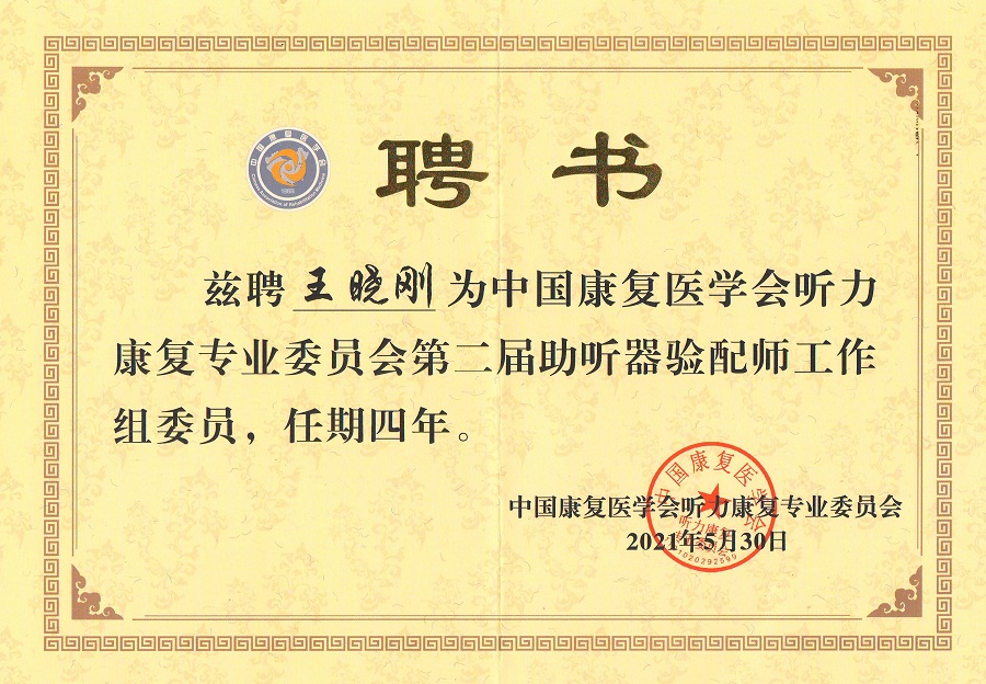 聽覺有道聯合創始人王曉剛先生增補為中國康復醫學會聽力康復專業委員會第二屆助聽器驗配師工作組委員。