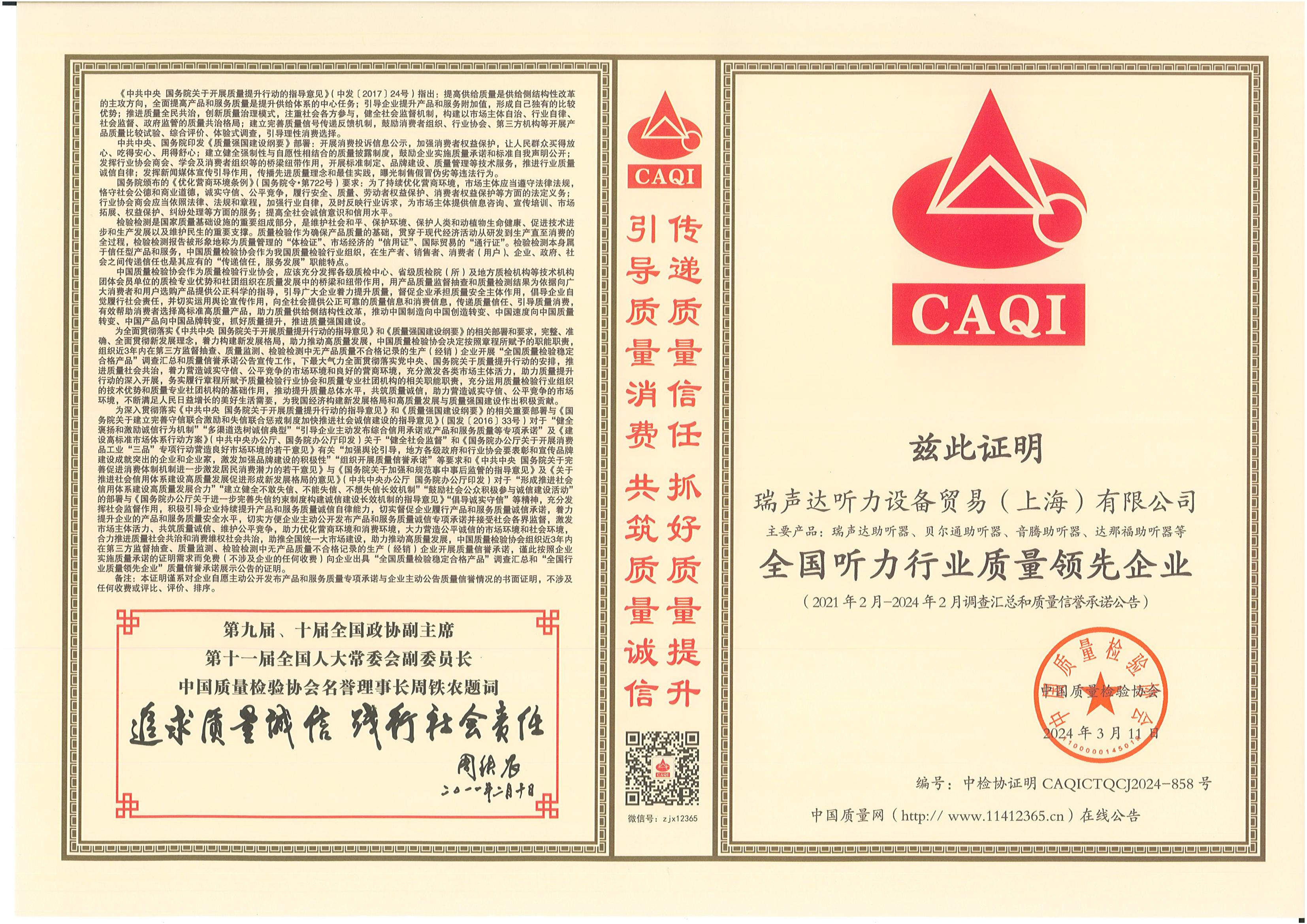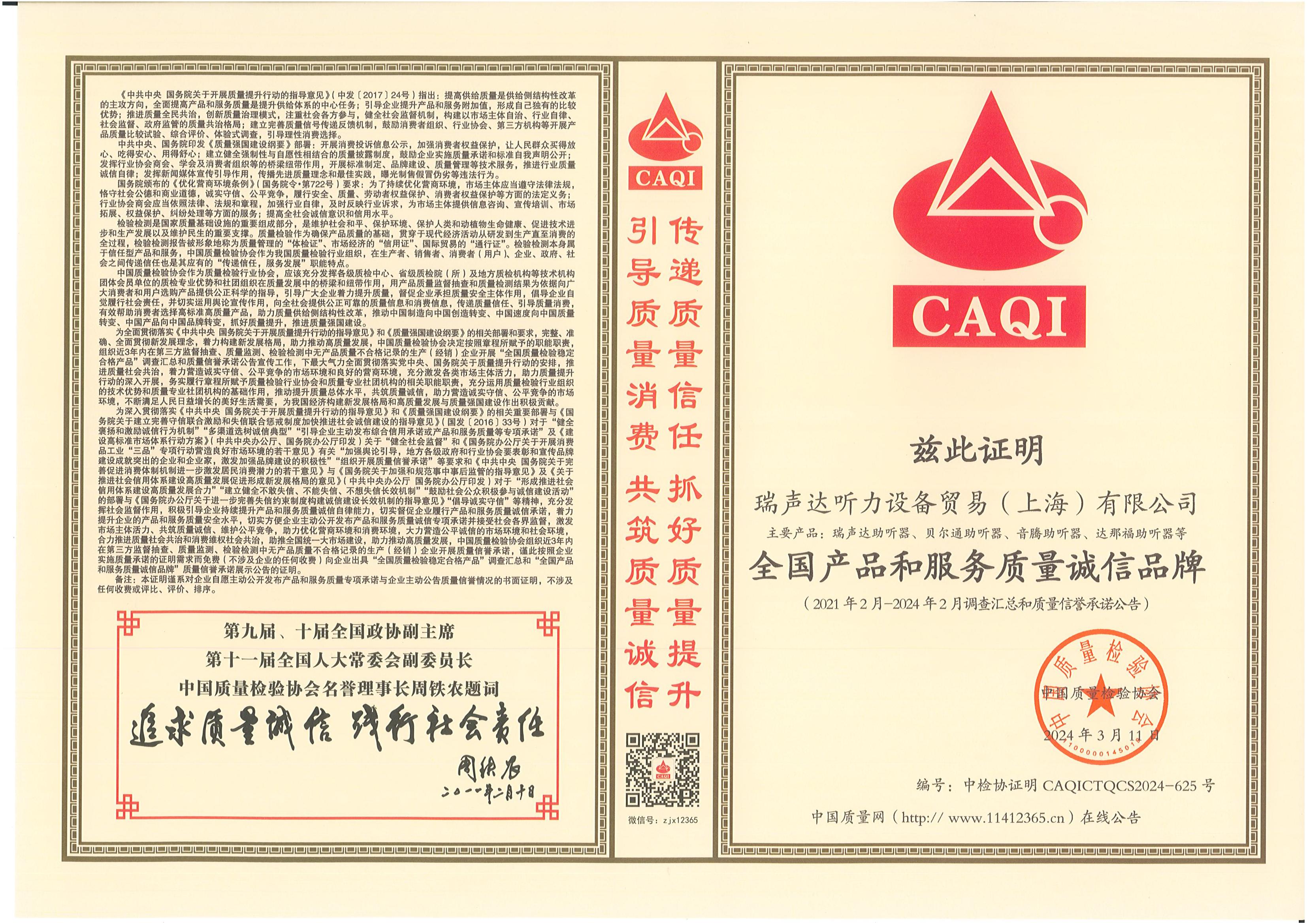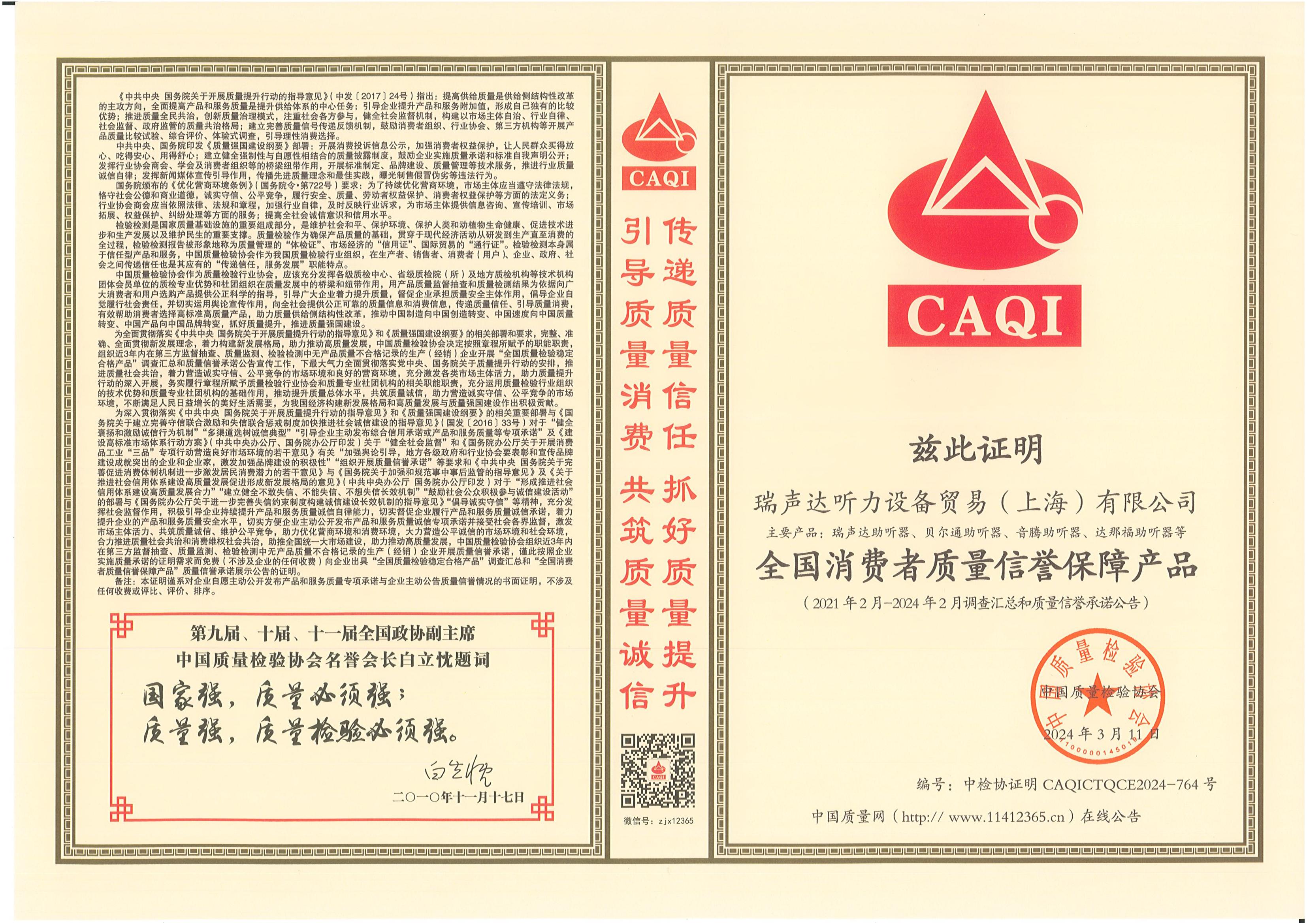 <span style="white-space:pre"> </span>2024年3月15日,是第42個(gè)國(guó)際消費(fèi)者權(quán)益日,是全體消費(fèi)者的共同節(jié)日。今年全國(guó)消協(xié)組織消費(fèi)維權(quán)年主題是“激發(fā)消費(fèi)活力”。<br /><br /> 作為對(duì)貝爾通助聽(tīng)器產(chǎn)品的肯定,2024年中國(guó)質(zhì)量檢驗(yàn)協(xié)會(huì)再次頒發(fā)了四項(xiàng)榮譽(yù)證書(shū),以期能引導(dǎo)用戶(hù)選擇高標(biāo)準(zhǔn)高質(zhì)量的產(chǎn)品,優(yōu)化消費(fèi)環(huán)境,保護(hù)消費(fèi)者權(quán)益。<br /></span><div style="text-align: center;"><br /></div><div style="text-align: center;"> 全國(guó)產(chǎn)品和服務(wù)質(zhì)量誠(chéng)信示范企業(yè)</div><p style="text-align: center;"><span style="font-size:16px;"><img src="/upfiles/202403150116348998.jpg" width="640" alt="" /><br /></span></p><p style="text-align: center;"><span style="font-size:16px;"> 全國(guó)聽(tīng)力行業(yè)質(zhì)量領(lǐng)先企業(yè)</span></p><p style="text-align: center;"><span style="font-size:16px;"><img src="/upfiles/202403150116524189.jpg" width="640" alt="" /><br /></span></p><span style="font-size:16px;"></span><div style="text-align: center;"><br /></div><p style="text-align: center;"><span style="font-size:16px;"> 全國(guó)消費(fèi)者質(zhì)量信譽(yù)保障產(chǎn)品</span></p><p style="text-align: center;"><span style="font-size:16px;"><img src="/upfiles/202403150117168442.jpg" width="640" alt="" /><br /></span></p><span style="font-size:16px;"></span><div style="text-align: center;"><br /></div><p style="text-align: center;"><span style="font-size:16px;"> 全國(guó)產(chǎn)品和服務(wù)質(zhì)量誠(chéng)信品牌</span></p><p style="text-align: center;"><span style="font-size:16px;"><img src="/upfiles/202403150117523284.jpg" width="640" alt="" /><br /></span></p><span style="font-size:16px;"><br /> 中國(guó)質(zhì)量檢驗(yàn)協(xié)會(huì)是國(guó)家市場(chǎng)監(jiān)督管理總局主管下的質(zhì)量檢驗(yàn)行業(yè)組織和質(zhì)量專(zhuān)業(yè)機(jī)構(gòu),為充分發(fā)揮名優(yōu)企業(yè)、消費(fèi)者之間的橋梁和紐帶作用,向廣大消費(fèi)者提供權(quán)威可靠的質(zhì)量信息,切實(shí)維護(hù)廣大名優(yōu)產(chǎn)品生產(chǎn)企業(yè)及消費(fèi)者的合法權(quán)益。<br /><br /> 中國(guó)質(zhì)量檢驗(yàn)協(xié)會(huì)連續(xù)多年頒發(fā)榮譽(yù)證書(shū),不僅代表著對(duì)貝爾通助聽(tīng)器產(chǎn)品質(zhì)量的肯定,這同時(shí)也是一份承諾和職責(zé),督促著我們持續(xù)為聽(tīng)損用戶(hù)提供優(yōu)質(zhì)的產(chǎn)品和服務(wù)!</span>" />